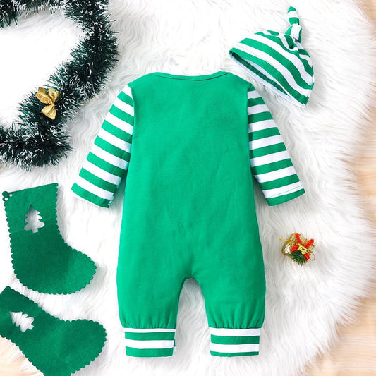 Letter Printed Striped Long Sleeve Jumpsuit
