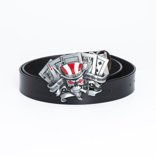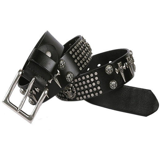 Punk First Layer Cowhide Men's DJ Belt Skull All-Match Belt