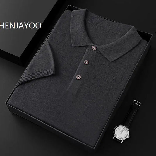 CHENJAYOO Classic Men Knitwear Silk Wool Blend Sweater Pullover Polo Neck T-Shirt Short Sleeved Loose Cool High-Quality Clothing