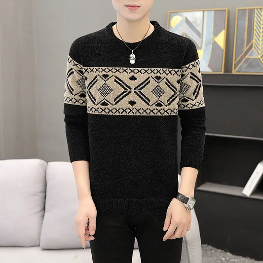 2024 High Quality Men's New Autumn and Winter Casual Warm Color Block Sweater