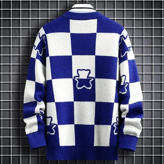 Men Korean Style Winter Hip Hop Loose Sweaters High End Cashmere Pullovers Men Clothing Fashion Plaid Christmas Sweater 3XL-M