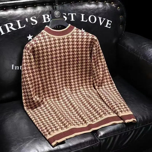 Autumn and Winter New Half High Collar Pullovers Casual Fashion Handsome Vintage Thousand All-match Harajuku GridSweaters