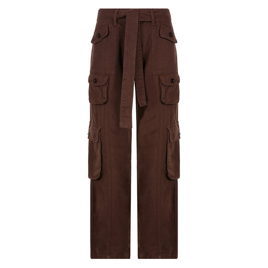 Fashionable Simple Loose Drawstring High Waist Jeans For Women