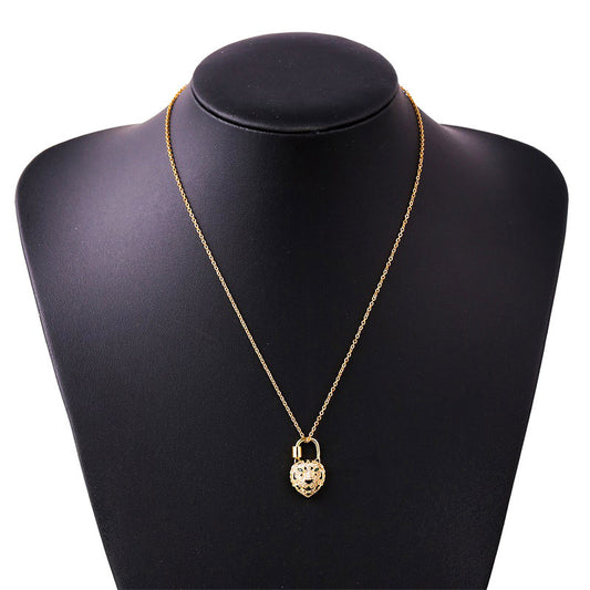 Long Copper Inlaid Zirconium Panther Head Necklace