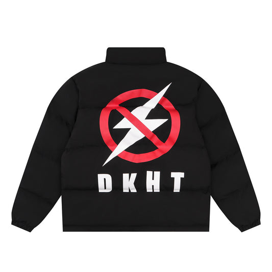Simple Letter Stand-up Collar Cotton-padded Coat Leather Coat For Men