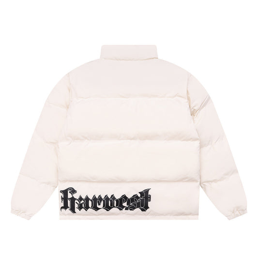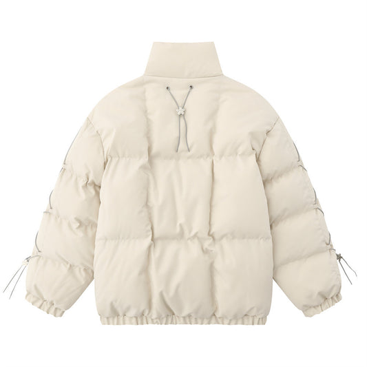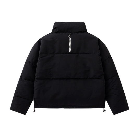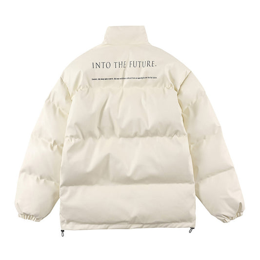 Metal Label Profile Bread Solid Color Stand Collar Velvet Cotton-padded Coat American High Street Simple Zipper Coat