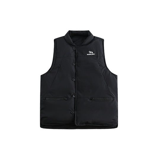 Solid Color Printing Sleeveless Top Zipper Multi-pocket Stand Collar Cotton Vest Men