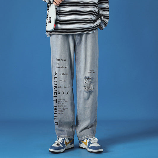 Pantalones High Street Jeans rasgados Hombres Pierna recta suelta