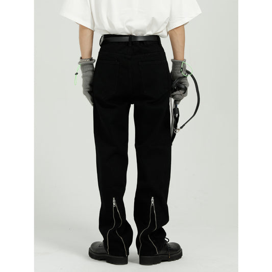 Vaqueros rectos con diseño de cremallera para hombre y mujer