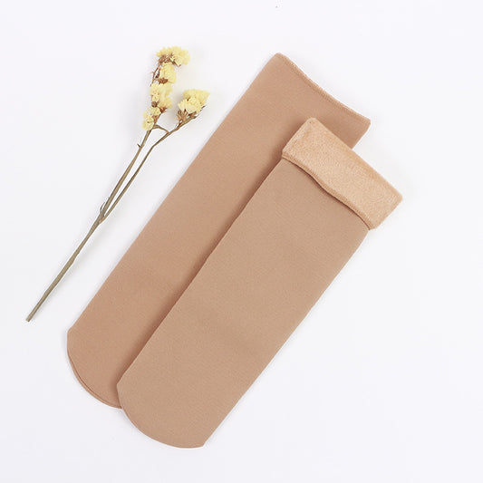 Calcetines de otoño e invierno para hombres y mujeres, calcetines de tubo salvajes, calcetines de suelo de nailon de imitación, además de calcetines gruesos de terciopelo para nieve