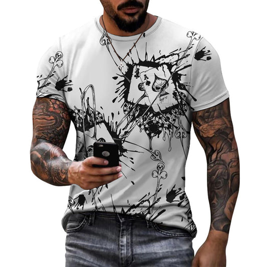 Camiseta de manga corta con cuello redondo y estampado 3D para hombre
