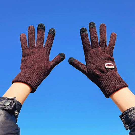 Otoño e invierno contraste de color lindo más guantes de punto de terciopelo mujeres