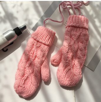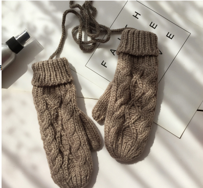 Guantes de lana con cuello colgante para mujer, manoplas de punto, estilo coreano, doble engrosamiento, a la moda, para invierno, coreanos