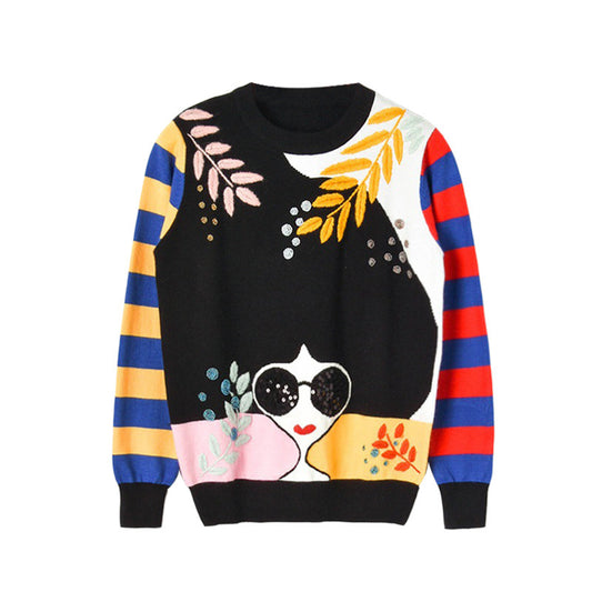 Lentejuelas Gafas De Sol Chica Cara Suéter Suéter Mujer
